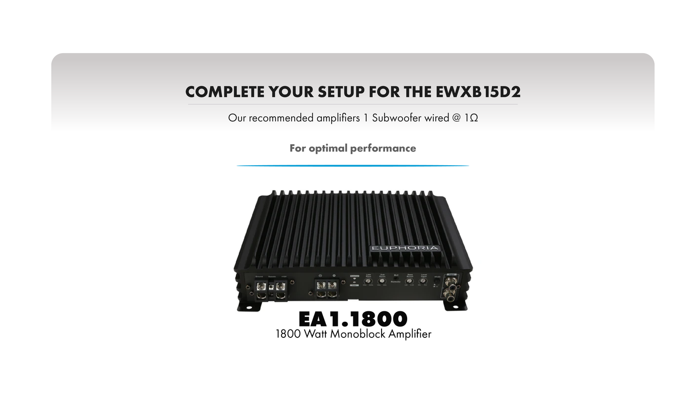 Experience the Euphoria of Unmatched Bass Power! Introducing the Euphoria EWXB15D2: 15in Subwoofer Black Out Edition Dual 2 Ohm – where power meets elegance in the world of sound. Designed to optimize SPL performance, this subwoofer is an audiophile's dream, boasting a high-excursion multi-layer foam surround and a high-temperature voice coil for exceptional durability and performance. The sleek blacked-out cosmetic design not only looks stunning but ensures high-output bass that's both deep and powerful. Featuring a 1.5” high roll foam surround and large gauge push button speaker terminals, this subwoofer is built for easy installation and superior sound quality. With a magnet size of 145 oz. and a max power of 2500 watts, it delivers an explosive audio experience. The dual 2Ω voice coil and high-grade low-carbon steel top and bottom plate further enhance its reliability and performance. Elevate your sound system with the Euphoria EWXB15D2 and feel the difference in every beat.